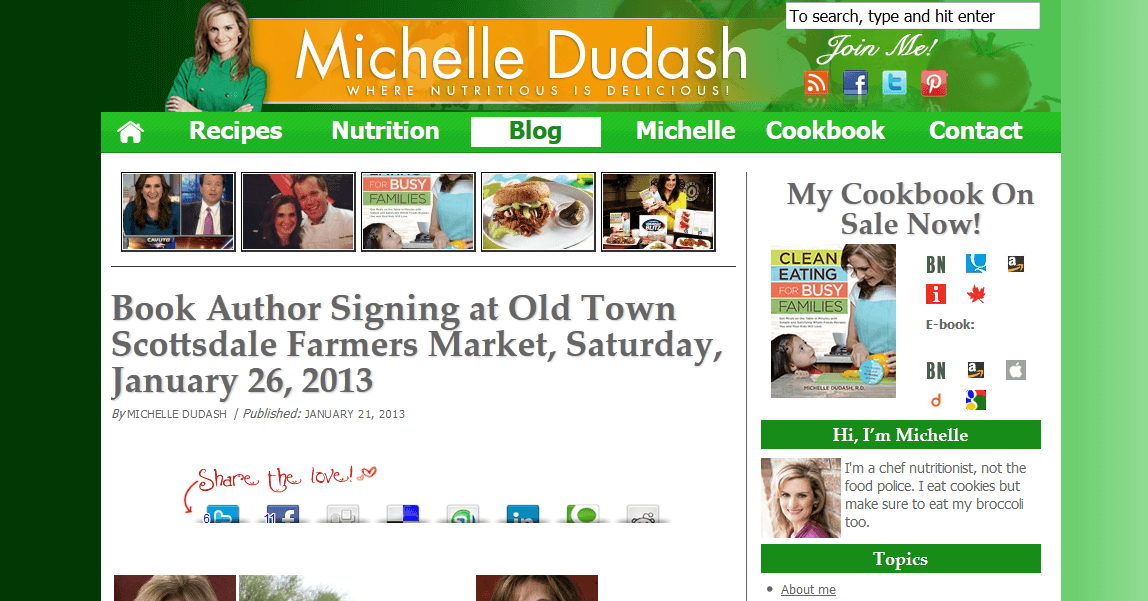 While I blogged here and there for various companies and for my own site, it was my participation in the SELF.com “Eat Like Me” blog-off that really catapulted me into blogging regularly. Then, The Arizona Republic took notice of the recipes on my blog and asked me to blog a weekly recipe that would also serve as my column in the paper and online.